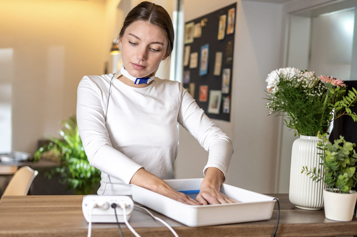 Mit den Saalio® Textilelektroden lassen sich auch andere Körperstellen wie das Gesicht, die Stirn, der Nacken oder der Rumpf mit der Leitungswasser-Iontophorese behandeln. Im Gegensatz zu Plattenelektroden sind die Textilelektroden anatomisch vorgeformt und können sich im nassen Zustand der Körperkontur sehr gut anpassen.